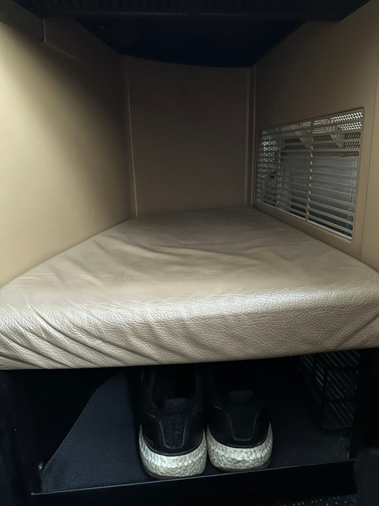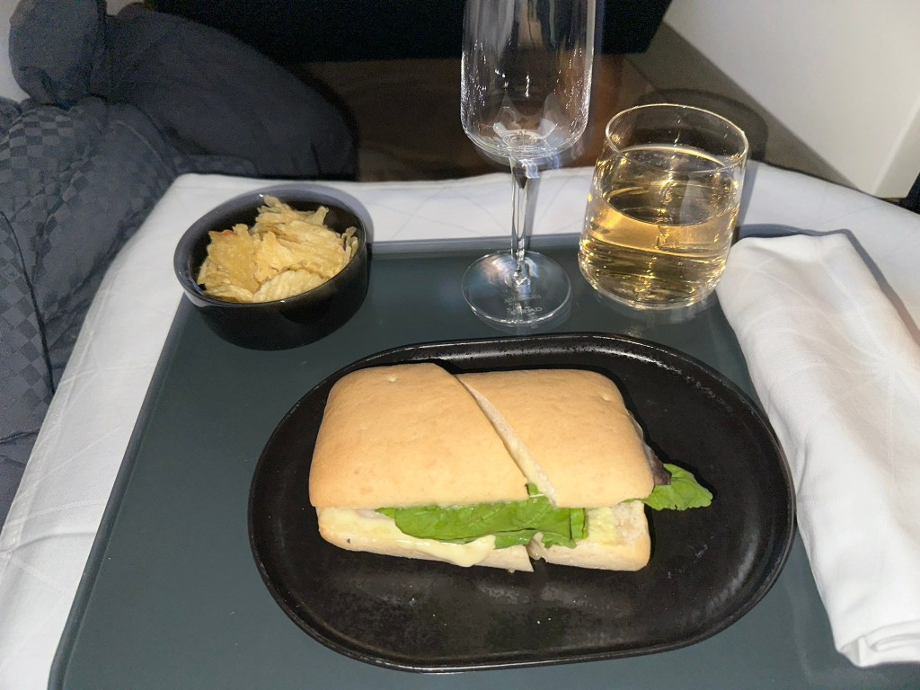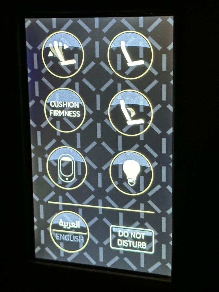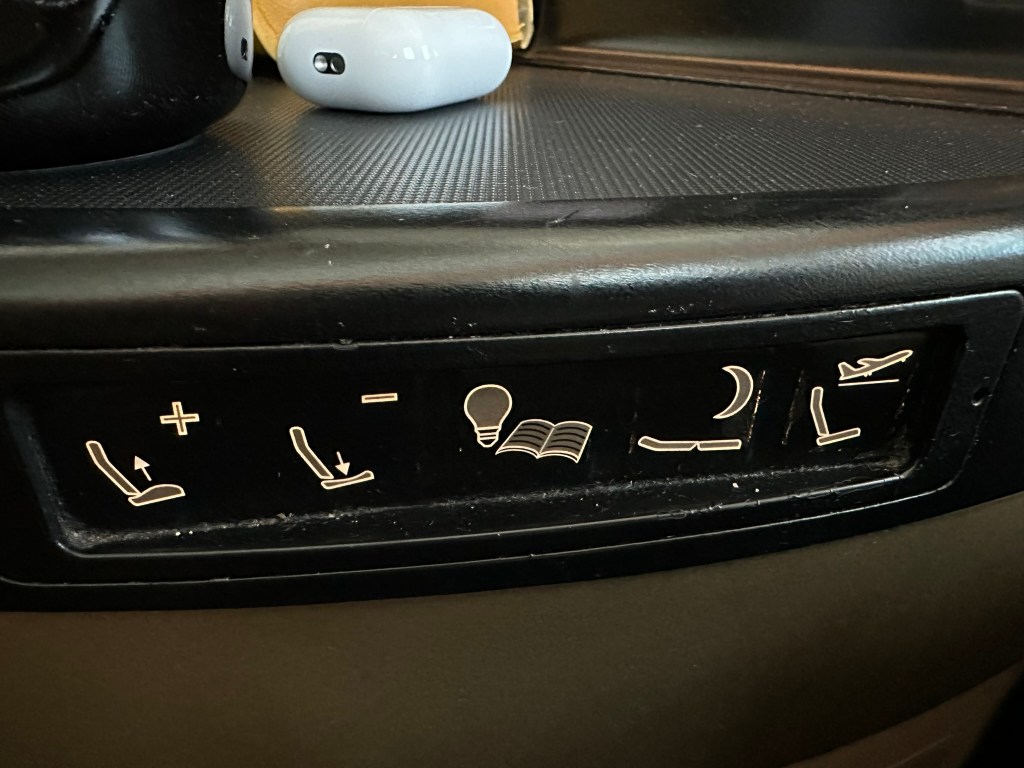 On this flight, there were people sitting in the rear-facing middle seats. Given the fact that “The Studio” is a product line that was first introduced in 2014, I didn´t really expect anything like a door. Nonetheless, a little privacy divider or any other form of visual cover would have been appreciated. As soon as you´re laying down or even just put the seat in a lounge position, this problem seems to be non-existent anymore. The overall sleeping experience was better than I had imagined it. As someone who is almost 2m tall (~6″5), this bed was long and comfortable enough! Still, I also noticed the tilted footrest, as noted above. That might be bothersome to some people, but it did NOT affect me to an extent where I e.g. couldn´t even sleep.