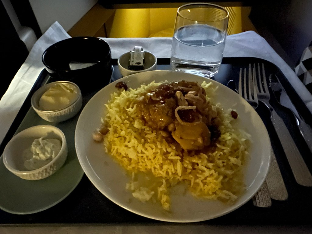 The rice and meat, again, where a little too dry for my taste. That could be an area of improvement for Etihad, since competitors like Qatar Airways are way ahead.