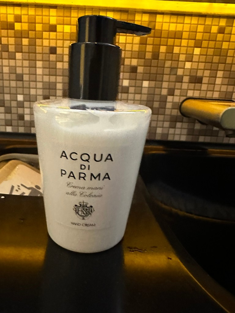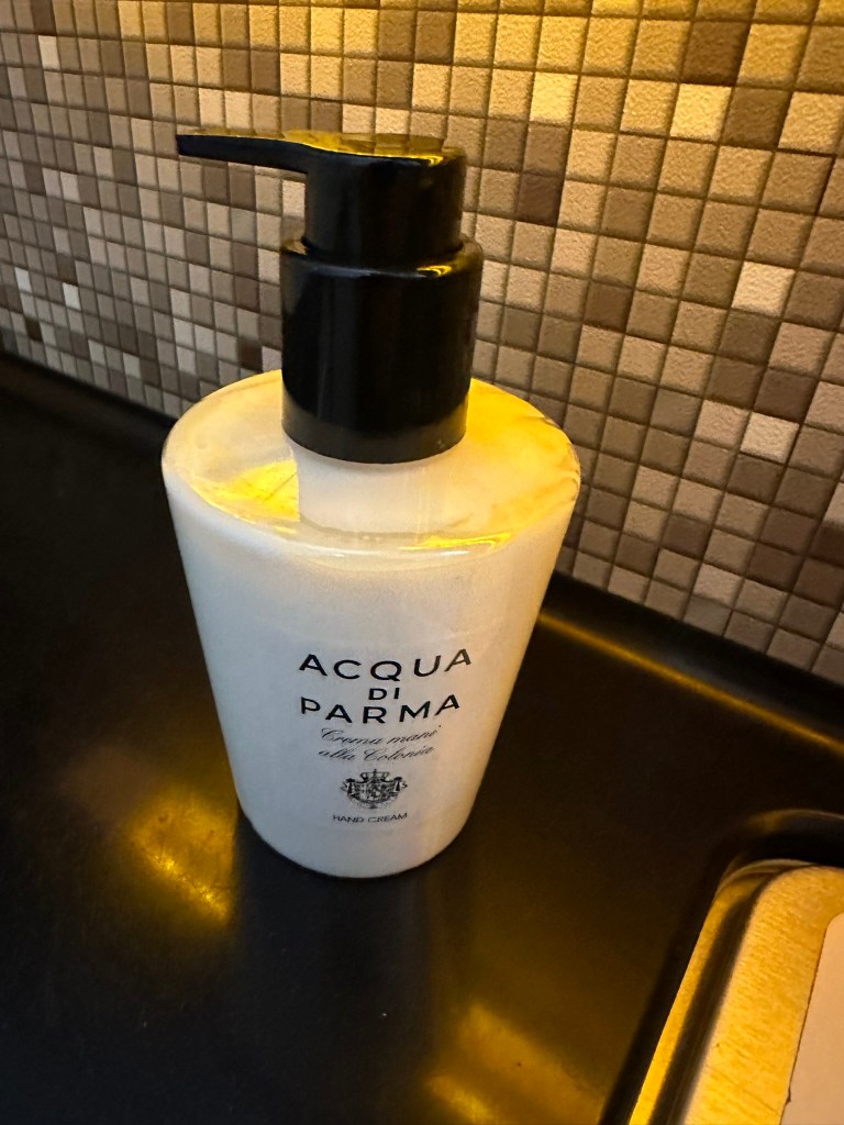 The bathrrom was very clean and it included some pretty expensive Aqua Di Parma amenities (for reference: a bottle of ADP hand cream sells for about 50$ online).