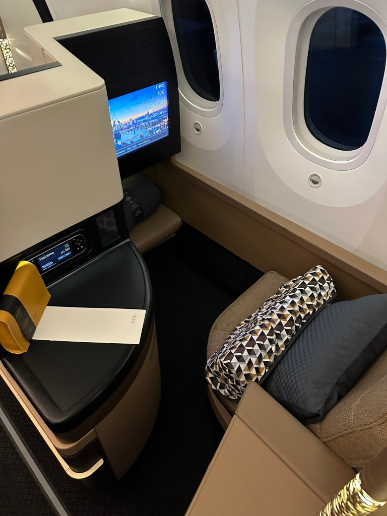 The overall boarding experience went smooth and the flight attendants greet you by name, which always has a nice touch to it. In the dreamliner, Etihad only has one business class cabin, which is located in the first 6 and 7 rows (row 5-11 in 787-9 and 6-12 in 787-10). There is no First Class or Residence Apartments in Etihad´s 787s.