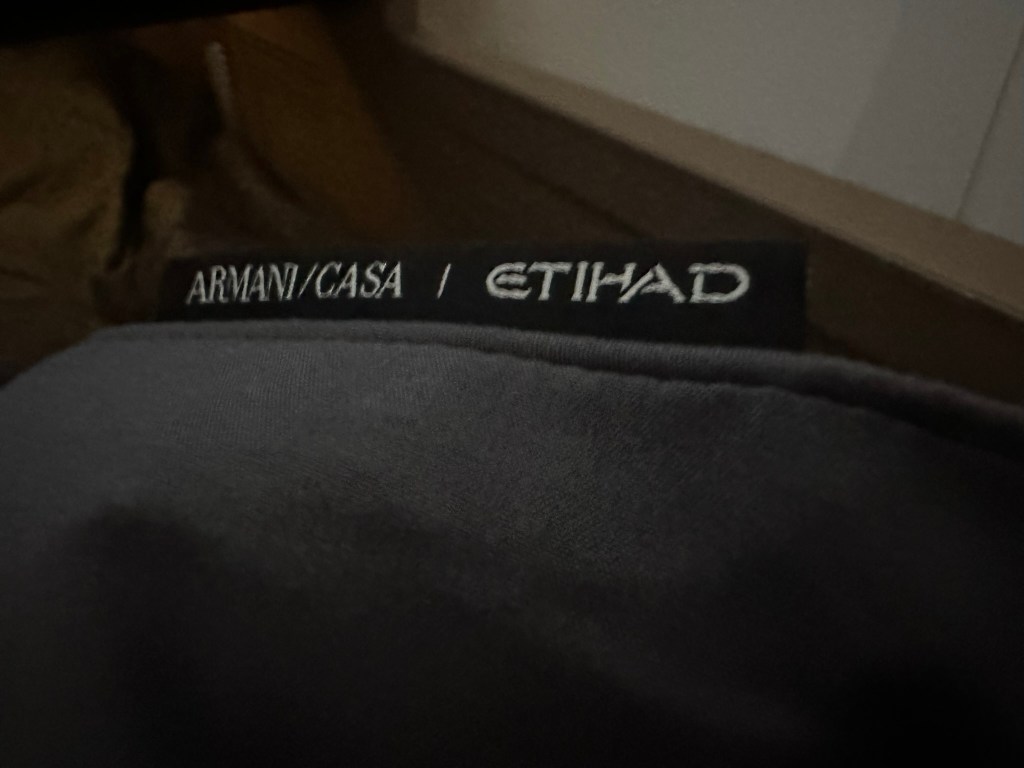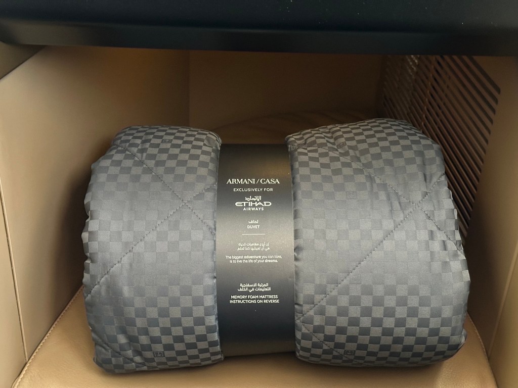 Bedding was also provided by Armani Casa. You´re not supposed to take any of these off the aircraft though.