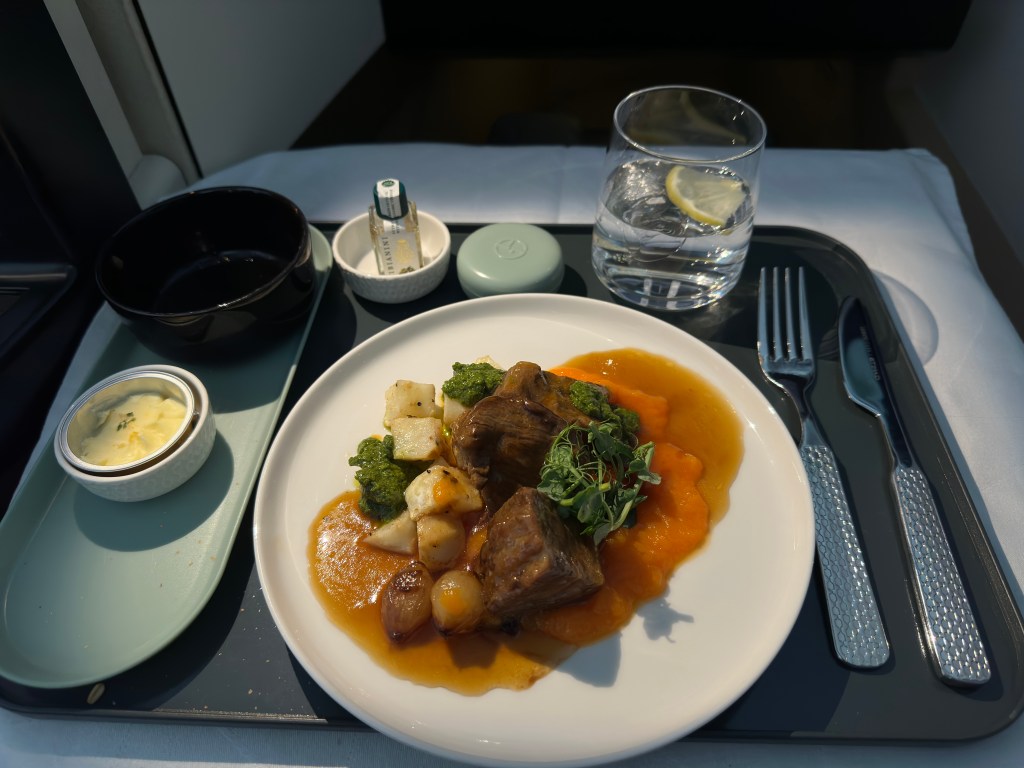 The main course did not disappoint and was in fact an improvement over the starter. The attention to detail that comes with the branded cutlery also makes this an awesome experience. The only downside here was that the meat seemed to be a bit too dry for my taste. Other than that, it was certainly of high quality compared to most other airlines.